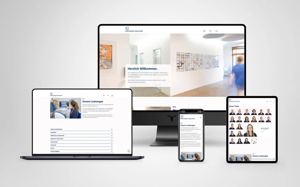 Wir entwickeln die neue Praxis-Website für Zahnmedizin Altenmarkt mit unserem Full-Service-Paket visionbites Pages. Der Fokus liegt auf einer einfachen, klaren Navigationsstruktur und schneller Ladegeschwindigkeit dank dem Flat-File CMS Kirby.