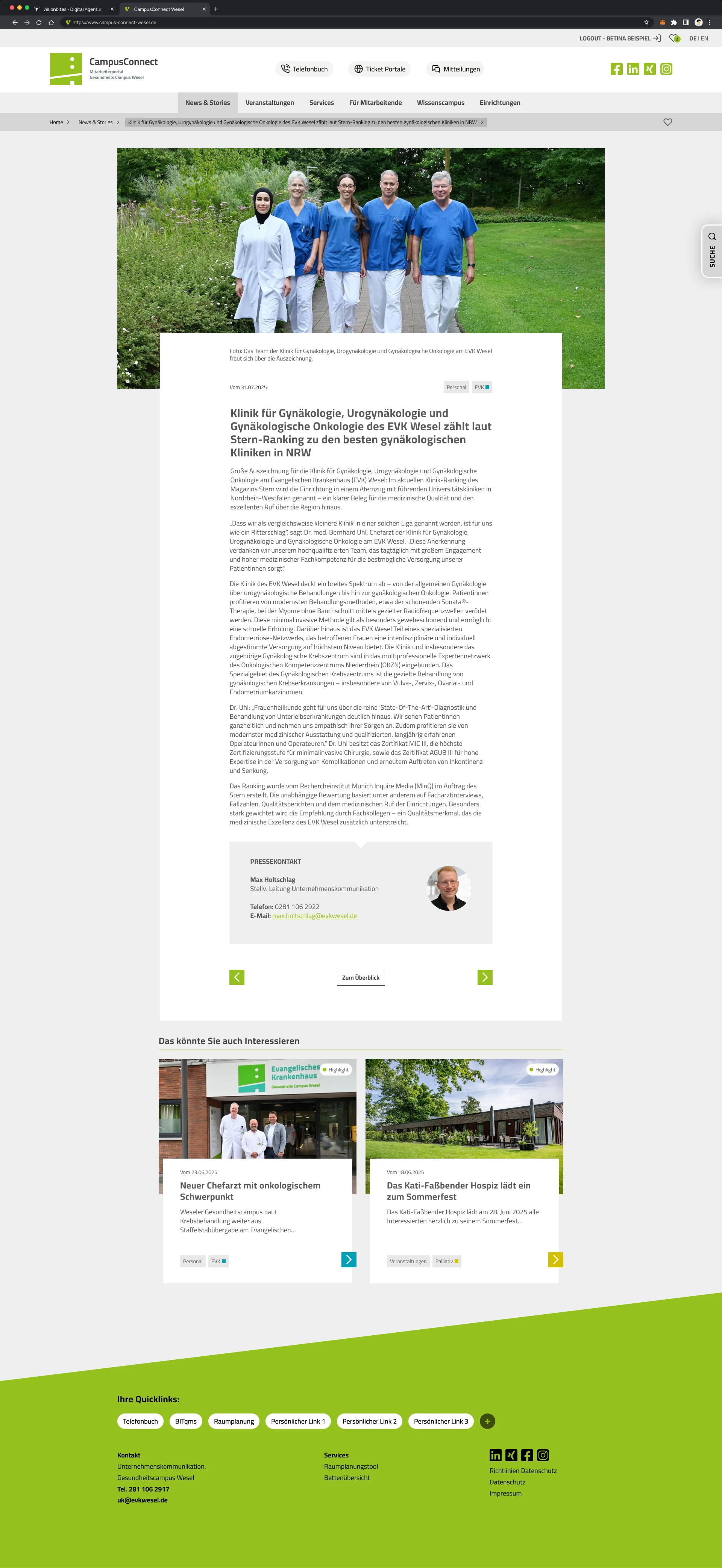 Ein zukunftsfähiges Mitarbeiterportal, das die interne Kommunikation am Gesundheitscampus Wesel nachhaltig stärkt und den Arbeitsalltag von über 1.200 Mitarbeitenden deutlich erleichtert.