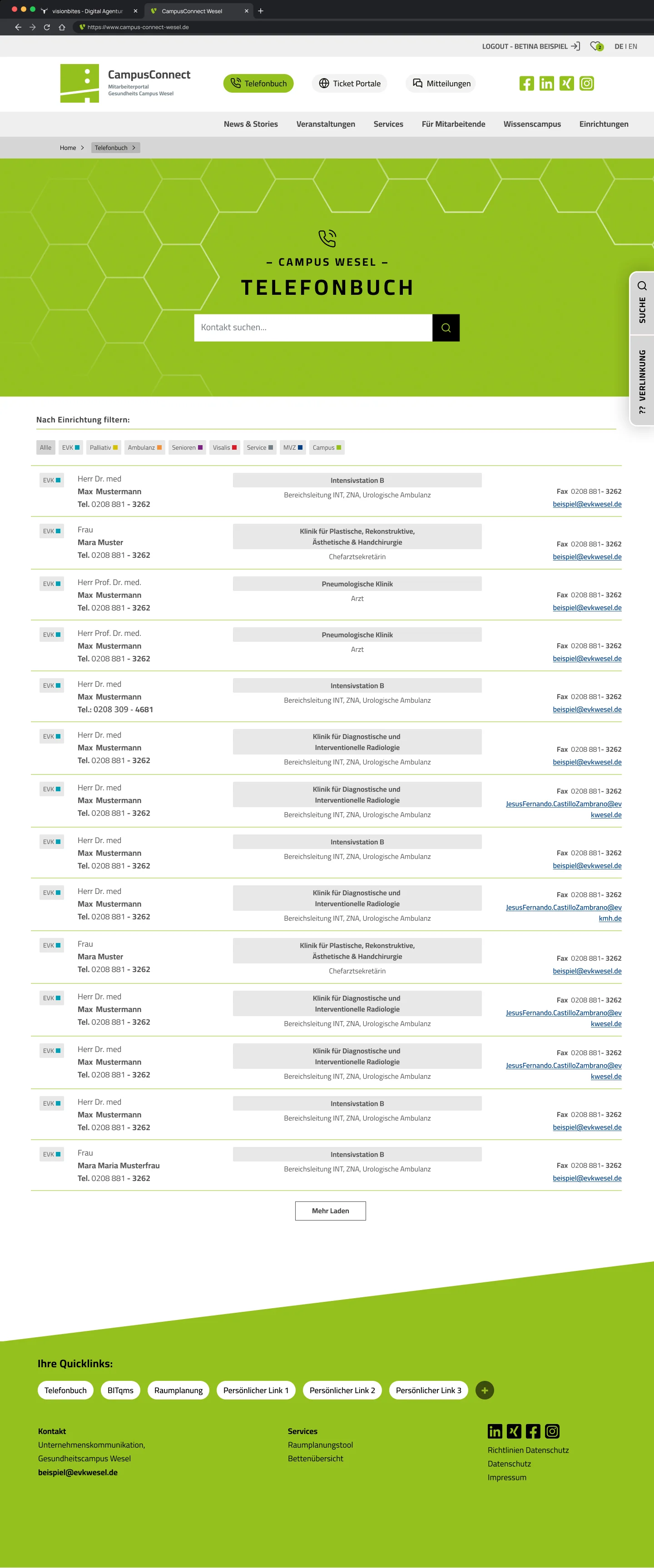 - Das Highlight des neuen Mitarbeiterportals ist das intelligente Telefonbuch mit Filter- und Suchfunktionen, das die Kontaktaufnahme zu Ansprechpartnern aus verschiedenen Abteilungen enorm erleichtert.