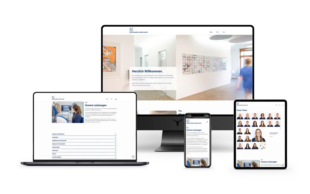 Die Website basiert auf visionbites Pages, unserem Full-Service-Website-Paket. Von der ersten Beratung über die inhaltliche Konzeption und Screendesign bis hin zum Go-Live konzipierten und realisierten wir das Projekt ganzheitlich. Ein zentraler Fokus lag auf der intuitiven Bedienbarkeit des Content-Management-Systems, sodass das Praxisteam Inhalte selbstständig pflegen und neue Teammitglieder einfach ergänzen kann.