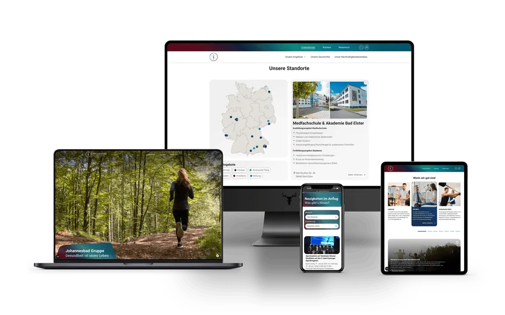 Für dieses Webprojekt übernahm visionbites Konzeption, Layout, Screendesign und die technische Umsetzung mit TYPO3. Ziel war es, das vielfältige Angebot des Johannesbad-Verbundes erstmals in einem gemeinsamen digitalen Webauftritt zu bündeln. Die Seite dient nun als technische Basis für alle weiteren Auftritte des Verbunds.