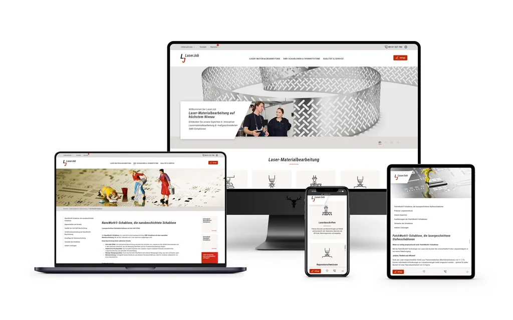 Die neue Website präsentiert das breite Leistungsspektrum im Bereich Lasertechnologie – von SMD-Schablonen über verschiedene Dienstleistungen in der Laser-Materialverarbeitung. Die besondere Herausforderung lag darin, die hohe technische Komplexität und Vielfalt der Leistungen klar, übersichtlich und benutzerfreundlich darzustellen.