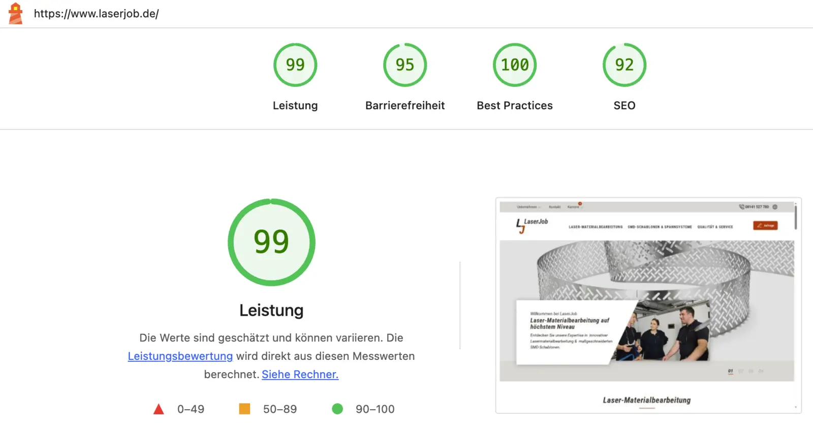 - Performance-Bestnoten im Google-Lighthouse-Test