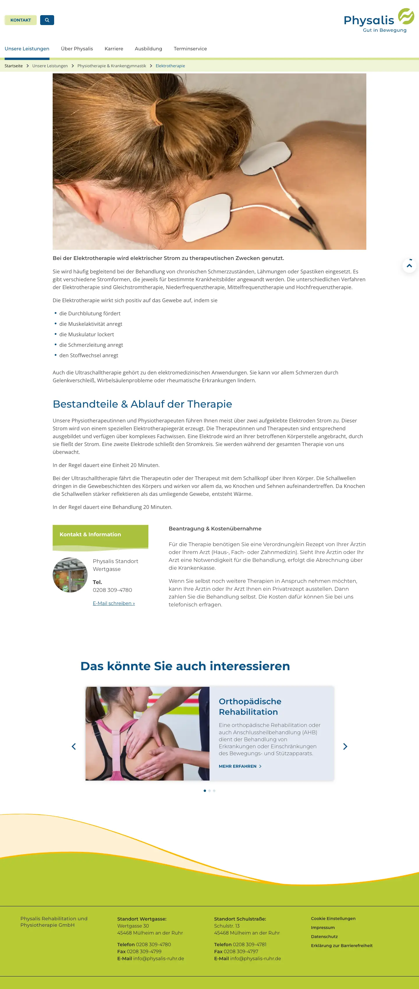 Das multiprofessionelle Team des Physalis Gesundheitszentrums setzt alles daran, Patienten die Freude an Bewegung zurückzugeben. Das ganzheitliche Behandlungskonzept des Gesundheitszentrums begleitet Patienten auf dem Weg zur Genesung und bietet eine erfolgsorientierte, individuelle Therapie.