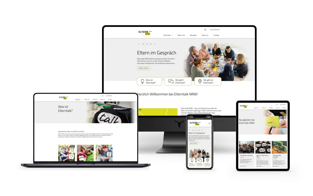 Elterntalk NRW ist ein landesweites Projekt zur Stärkung der Erziehungskompetenz von Eltern. In moderierten Gesprächsrunden tauschen sich Mütter und Väter zu den Themen Medien, Gesundes Aufwachsen und Pubertät aus. Die Besonderheit: Die Eltern selbst sind die Expert:innen und entwickeln gemeinsam eigene Lösungswege für ihren Alltag mit Kindern. Geschulte Moderator:innen, die selbst Eltern sind, begleiten die Talks und schaffen einen Raum für respektvollen Austausch auf Augenhöhe.
